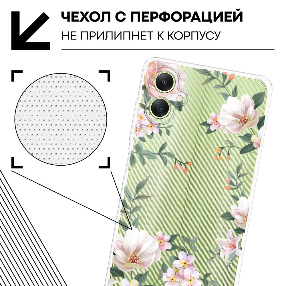 СохранитьЧехол на Samsung Galaxy A06 / Самсунг Галакси А06 с принтом С цветами белыми, прозрачный интересное: