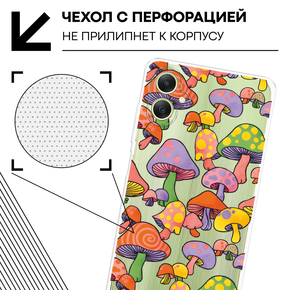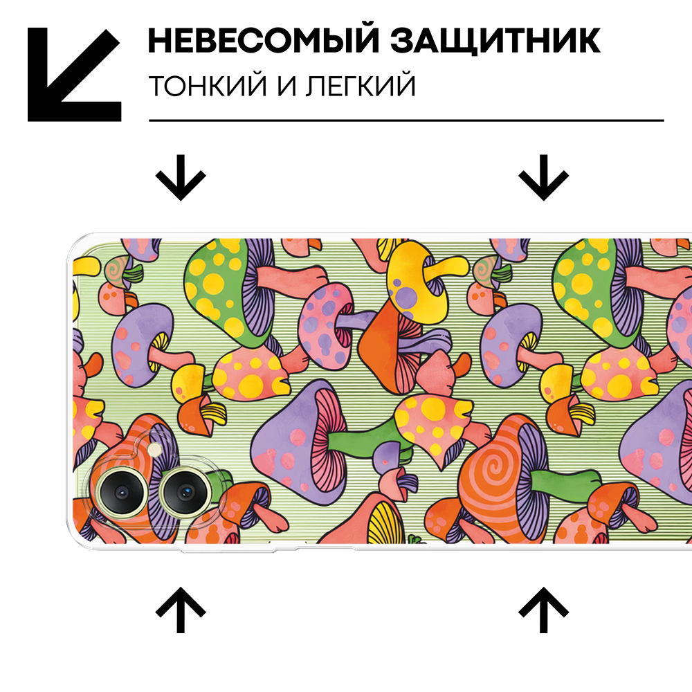 СохранитьЧехол на Samsung Galaxy A06 / Самсунг Галакси А06 с принтом Цветные грибы, прозрачный интересное: