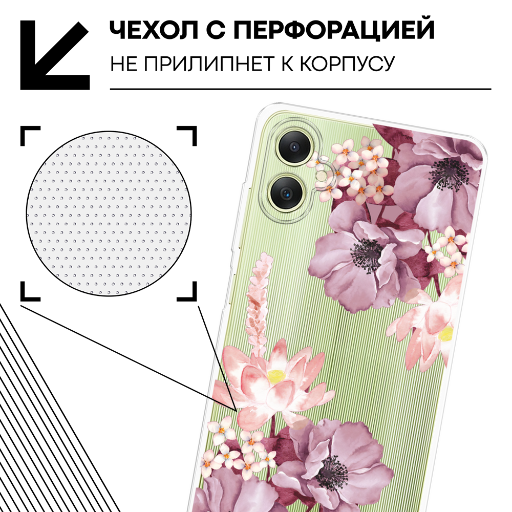 Купить Чехол на Samsung Galaxy A06 / Самсунг Галакси А06 с принтом Розовые анемоны, прозрачный