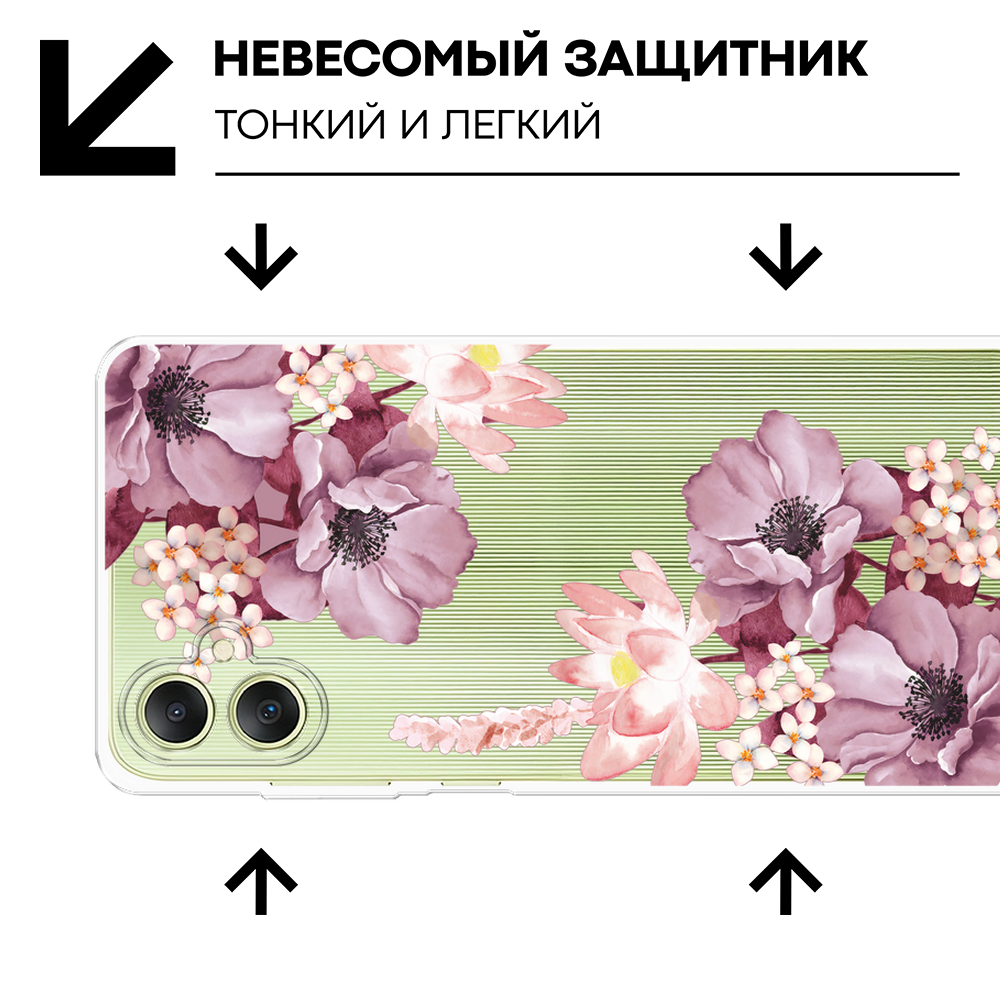 СохранитьЧехол на Samsung Galaxy A06 / Самсунг Галакси А06 с принтом Розовые анемоны, прозрачный интересное: