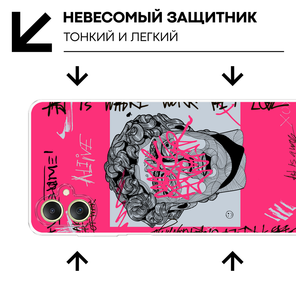 СохранитьЧехол на Samsung Galaxy A06 / Самсунг Галакси А06 с принтом Давид на розовом фоне интересное: