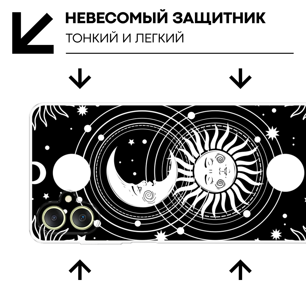 СохранитьЧехол на Samsung Galaxy A06 / Самсунг Галакси А06 с принтом Дуэт Солнца и Луны интересное: