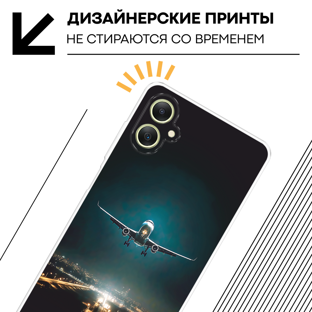 Купить Чехол на Samsung Galaxy A06 / Самсунг Галакси А06 с принтом Взлет самолета ночью
