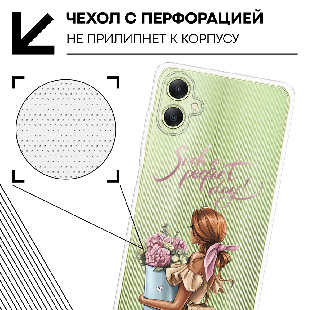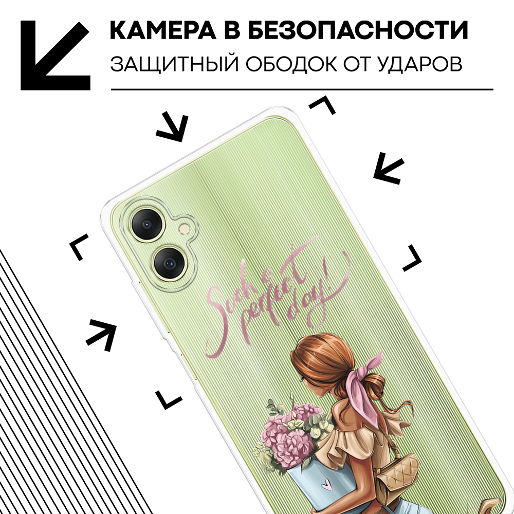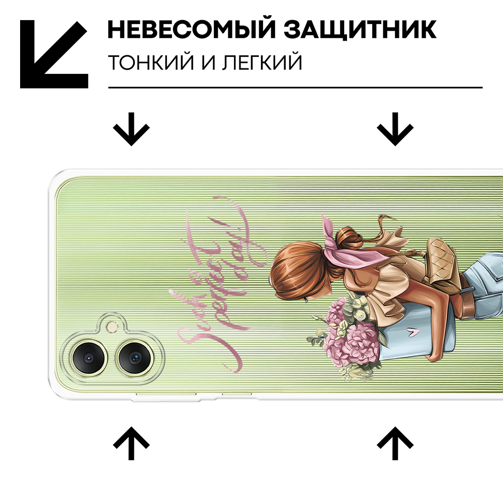 СохранитьЧехол на Samsung Galaxy A06 / Самсунг Галакси А06 с принтом Девушка с букетом, прозрачный интересное: