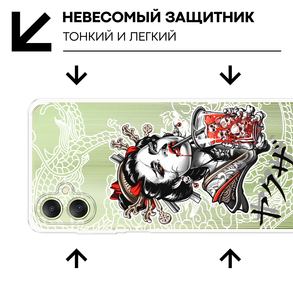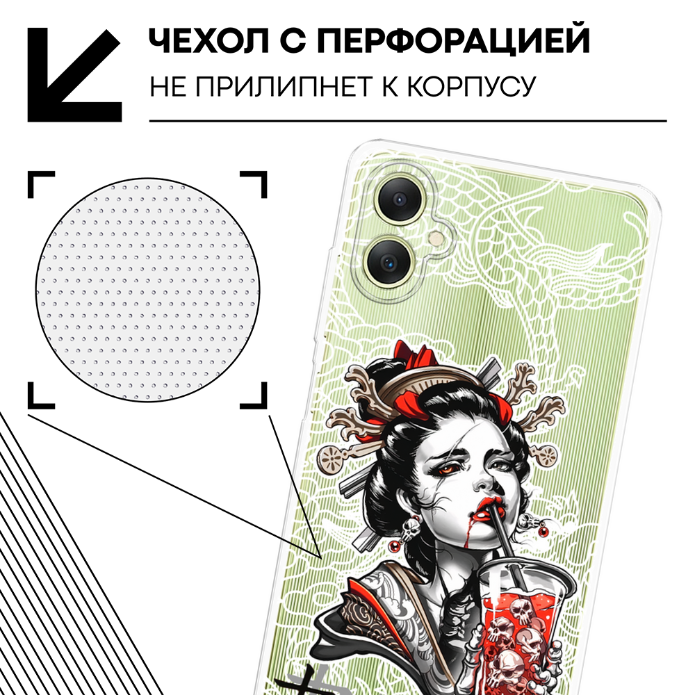 СохранитьЧехол на Samsung Galaxy A06 / Самсунг Галакси А06 с принтом Гейша с напитком, прозрачный интересное: