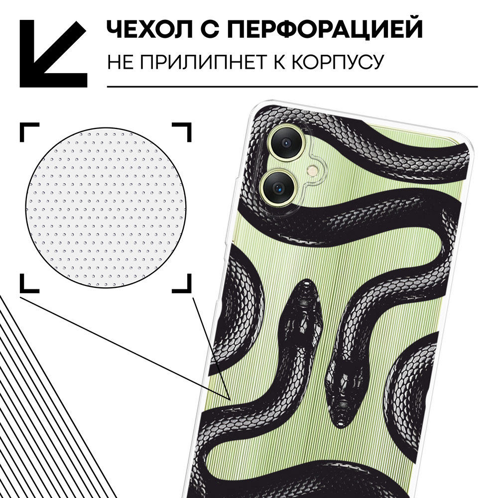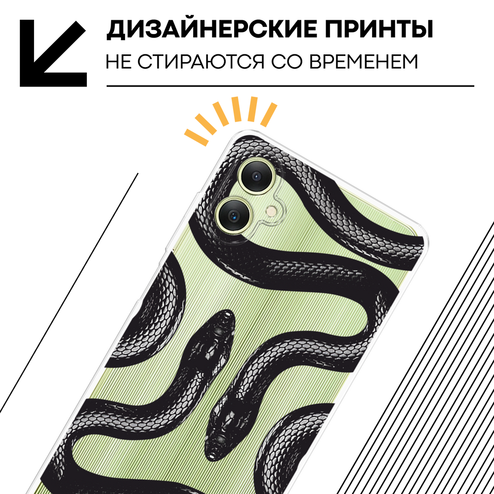 СохранитьЧехол на Samsung Galaxy A06 / Самсунг Галакси А06 с принтом Черные змеи, прозрачный интересное: