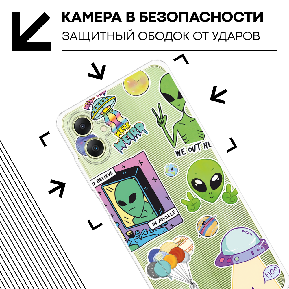 СохранитьЧехол на Samsung Galaxy A06 / Самсунг Галакси А06 с принтом Инопланетяне, прозрачный интересное: