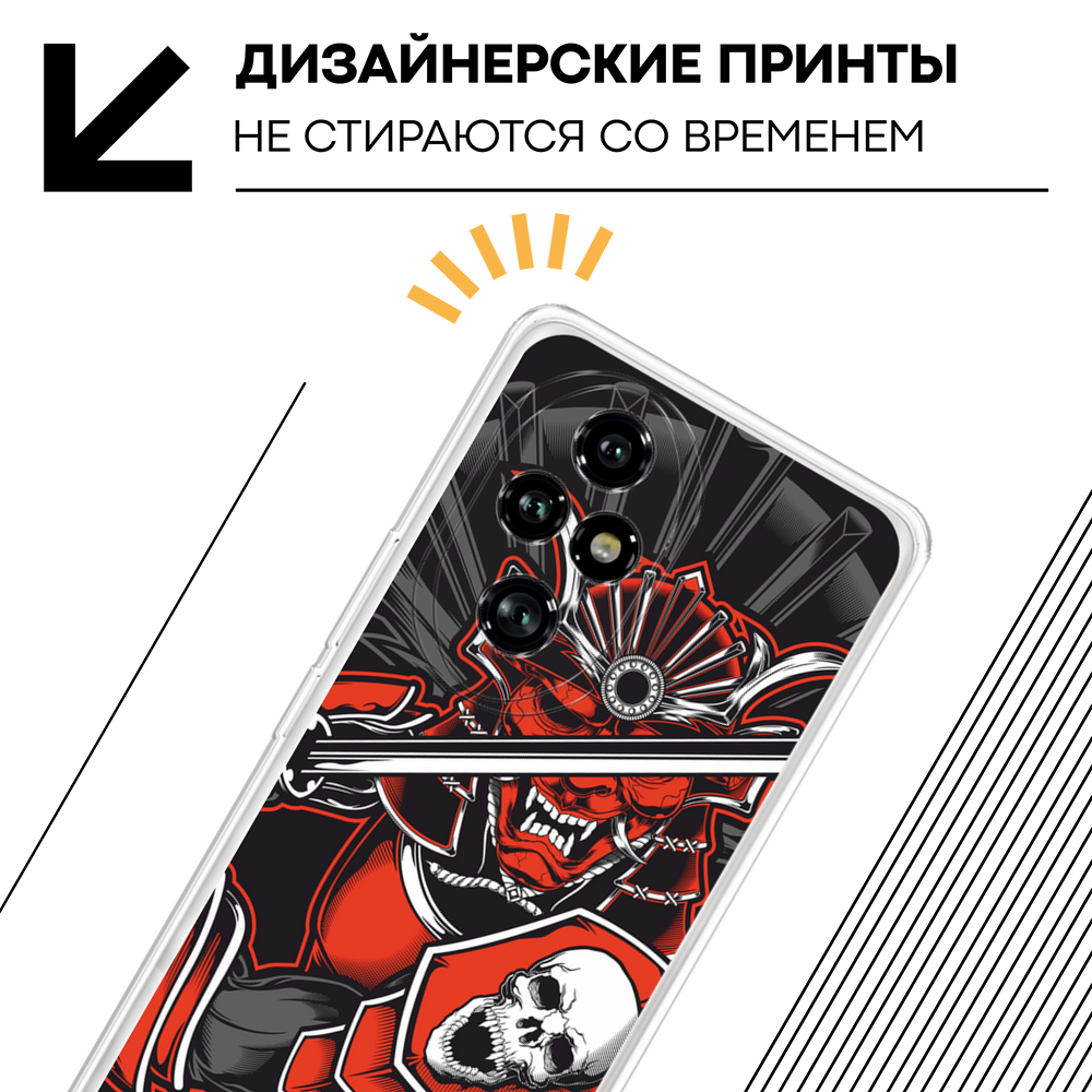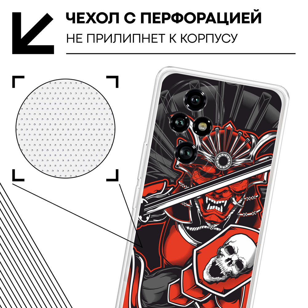 СохранитьЧехол на Honor 200 Pro / Хонор 200 Про с принтом Самурай с черепом интересное:
