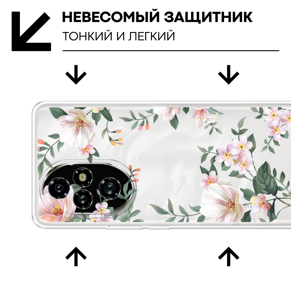СохранитьЧехол на Honor 200 Pro / Хонор 200 Про с принтом С цветами белыми, прозрачный интересное: