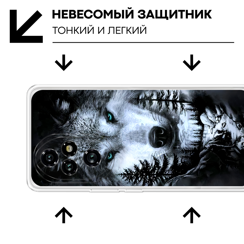 СохранитьЧехол на Honor 200 Pro / Хонор 200 Про с принтом Волк в зимнем лесу интересное:
