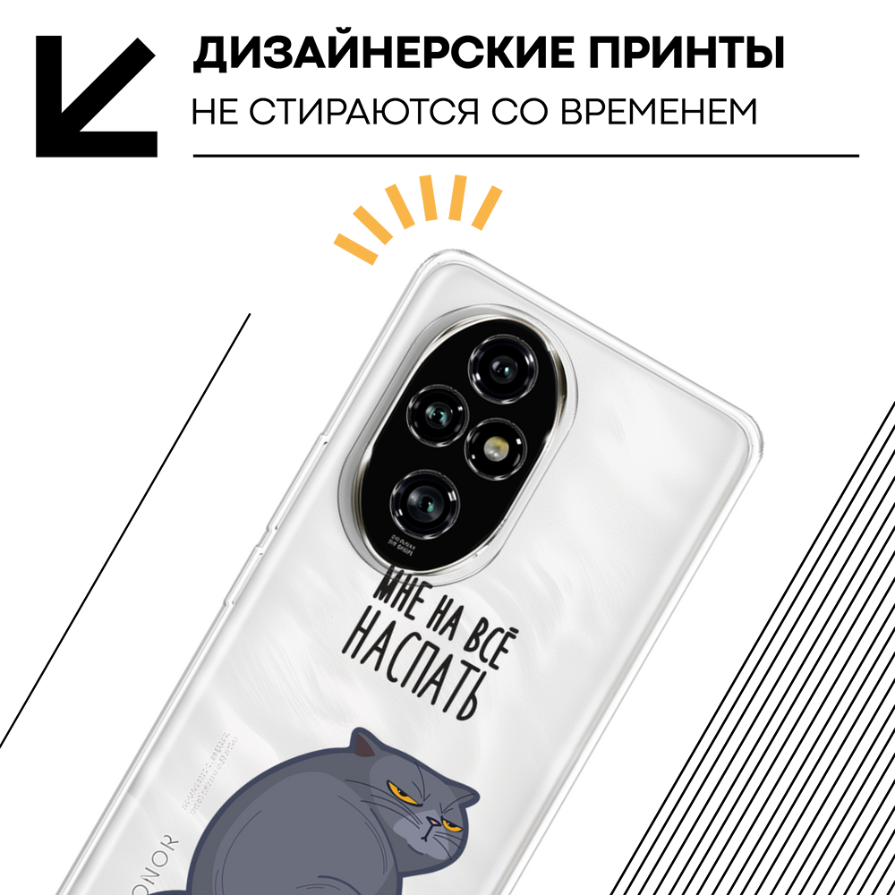 Купить Чехол на Honor 200 Pro / Хонор 200 Про с принтом Мне на все наспать, прозрачный