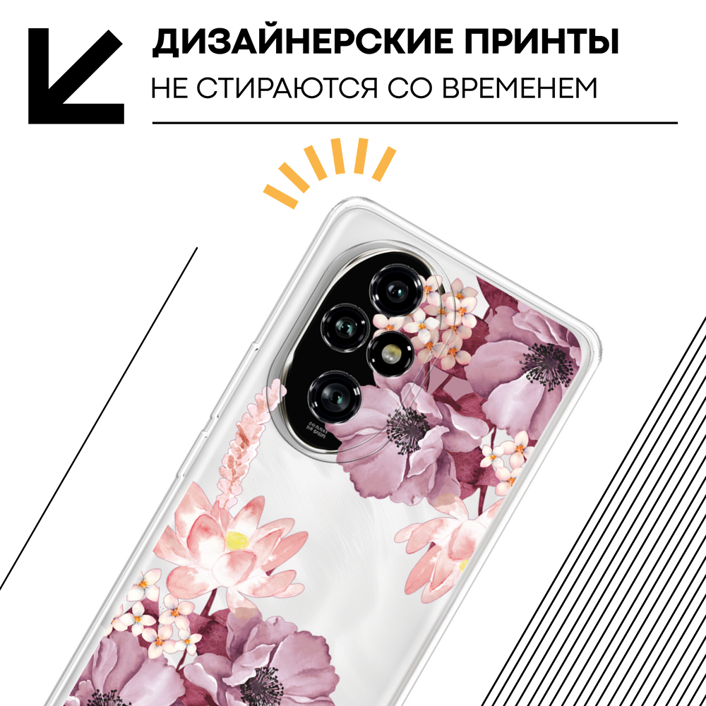 Купить Чехол на Honor 200 Pro / Хонор 200 Про с принтом Розовые анемоны, прозрачный