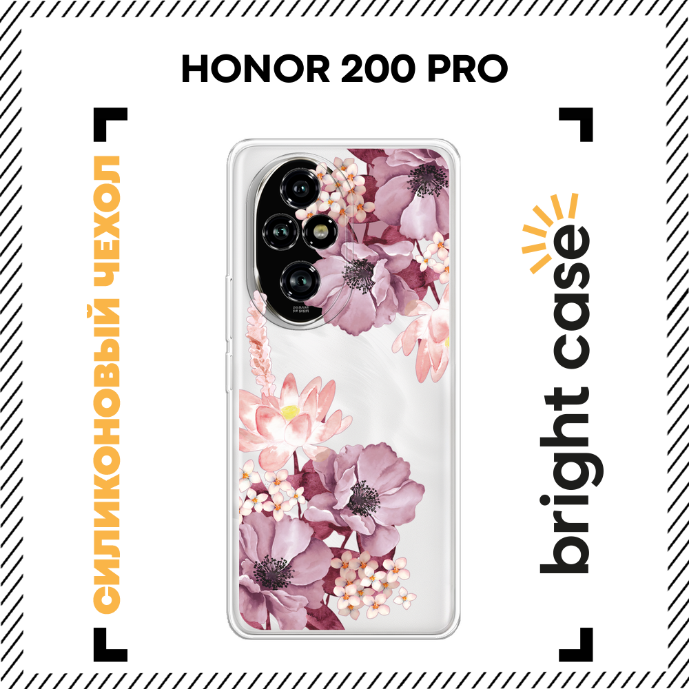СохранитьЧехол на Honor 200 Pro / Хонор 200 Про с принтом Розовые анемоны, прозрачный интересное: