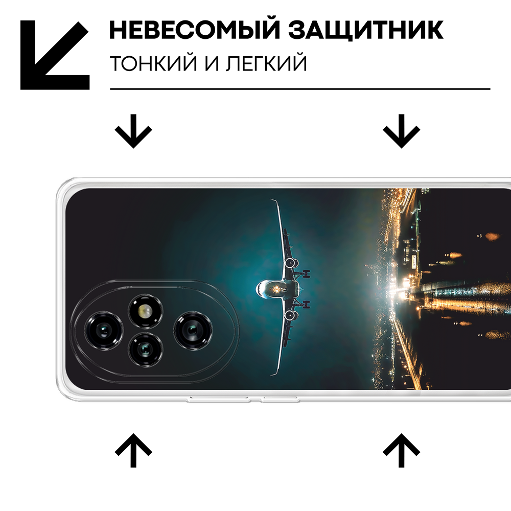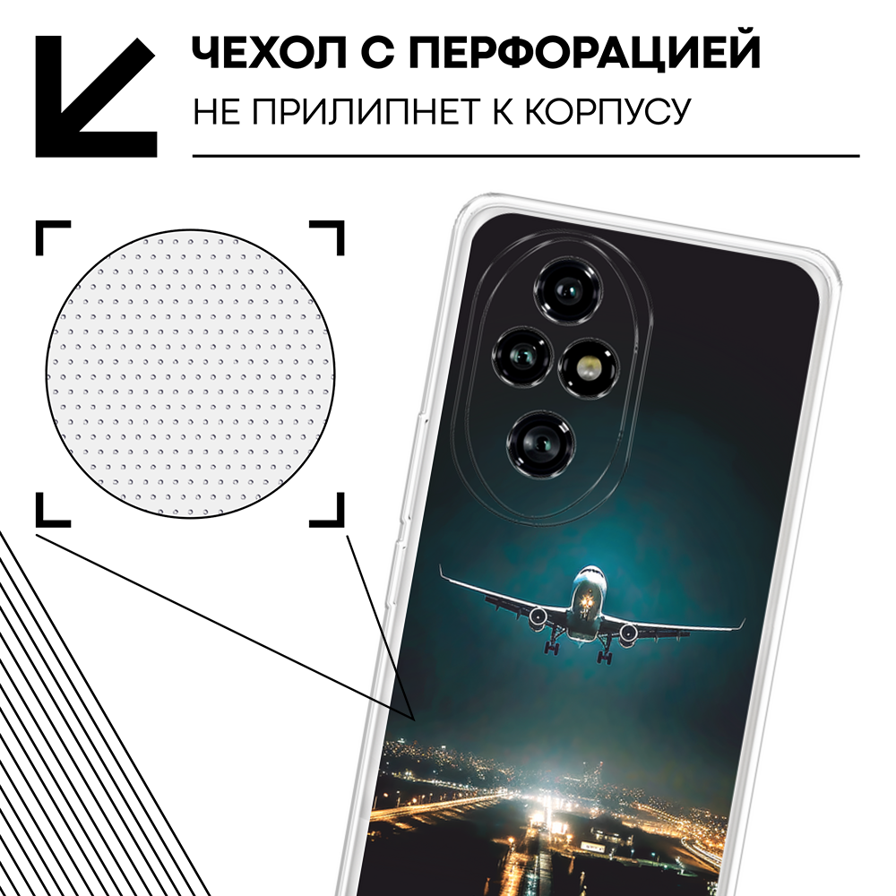 СохранитьЧехол на Honor 200 Pro / Хонор 200 Про с принтом Взлет самолета ночью интересное: