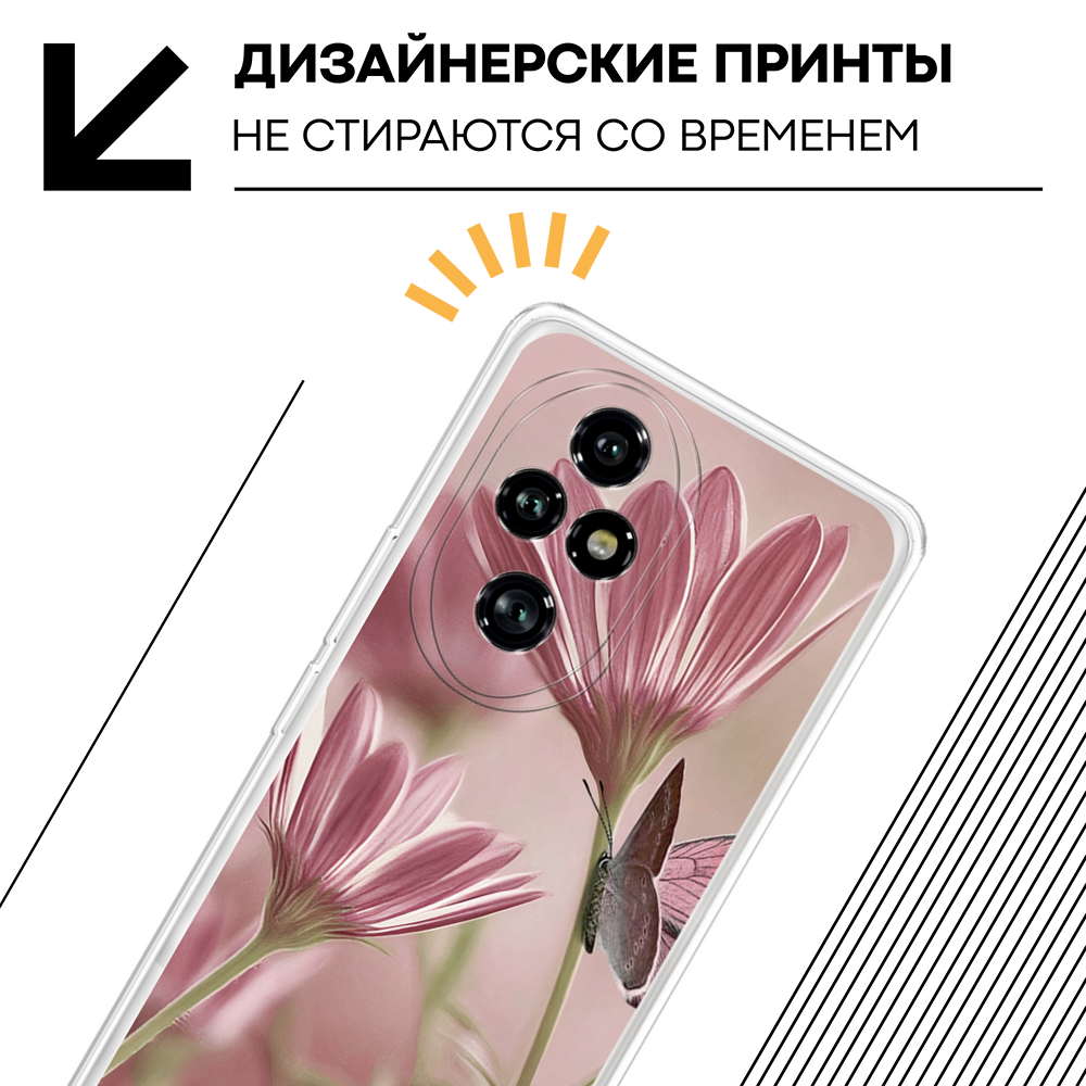 СохранитьЧехол на Honor 200 Pro / Хонор 200 Про с принтом Цветы и бабочка интересное: