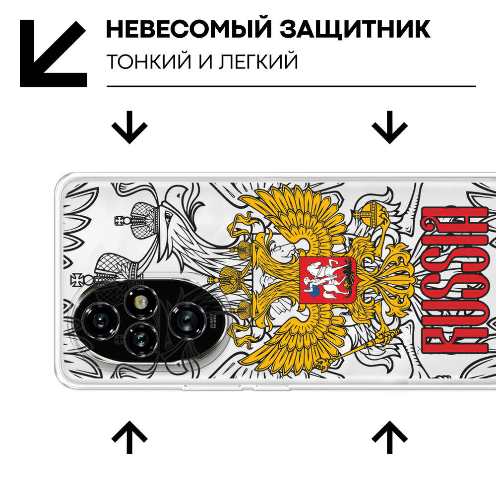 СохранитьЧехол на Honor 200 Pro / Хонор 200 Про с принтом Герб России, прозрачный интересное: