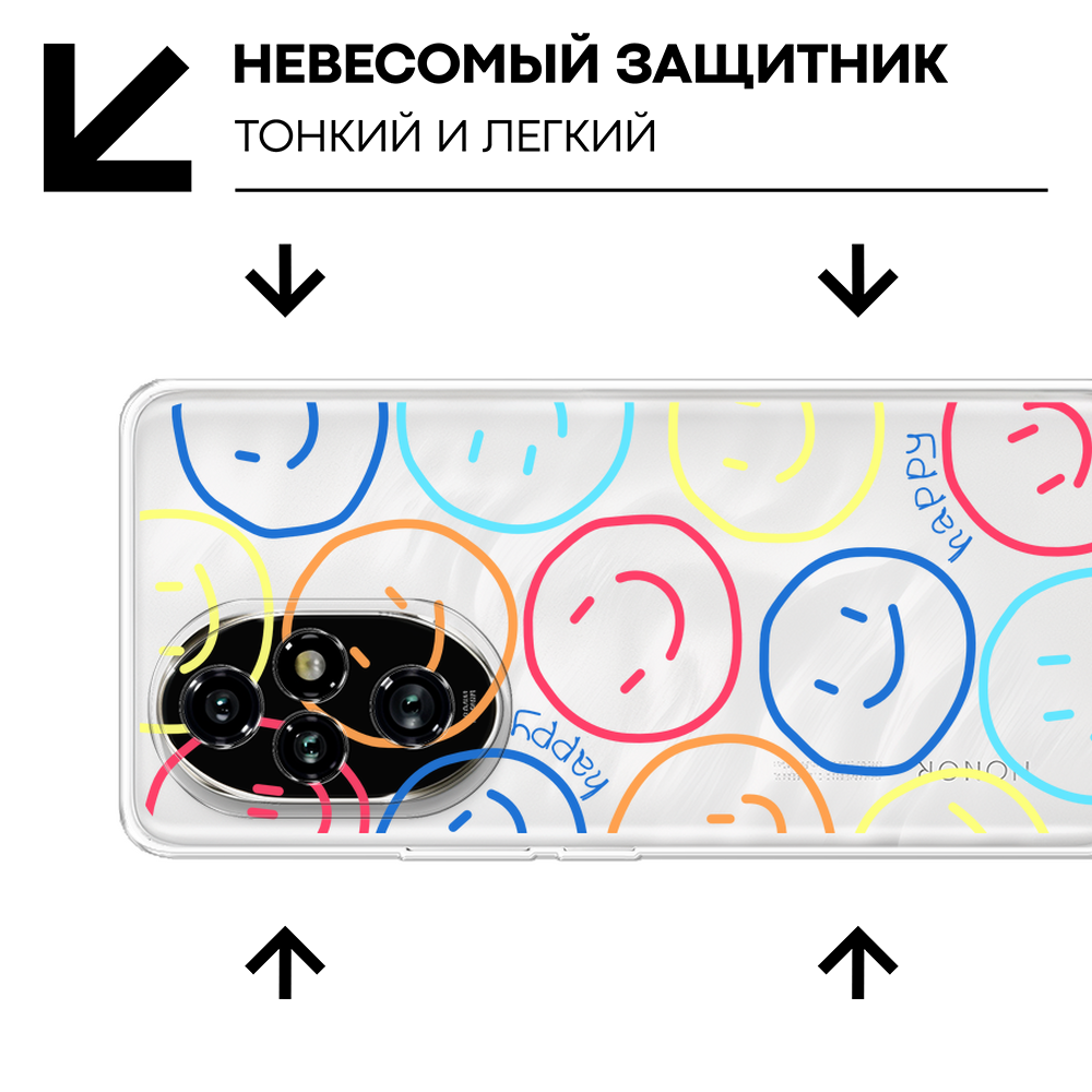 СохранитьЧехол на Honor 200 Pro / Хонор 200 Про с принтом Смайлы, прозрачный интересное:
