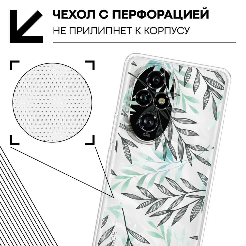 СохранитьЧехол на Honor 200 Pro / Хонор 200 Про с принтом Тонкие листья, прозрачный интересное: