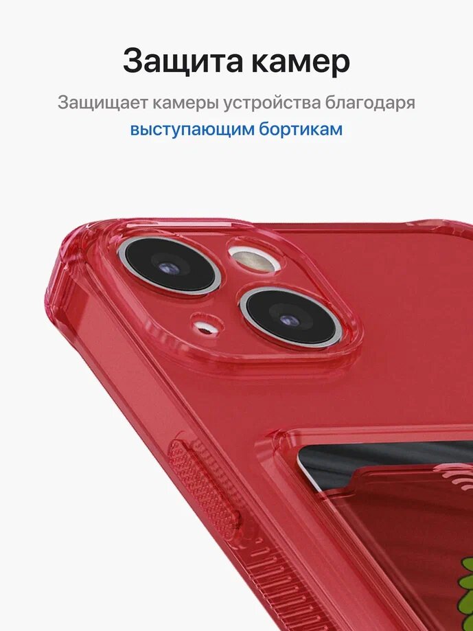 Чехол на Айфон 13 противоударный с карманом для карт / iPhone 13 чехол прозрачный красный