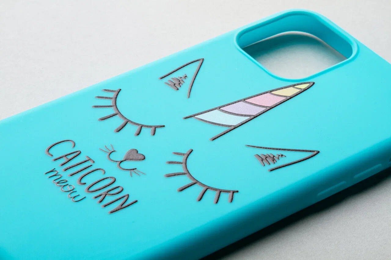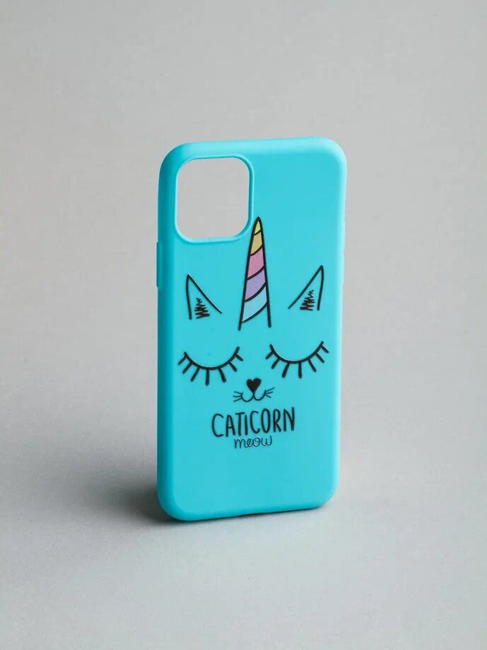 СохранитьЧехол для iPhone 11 / Айфон 11 матовый голубой с принтом "Caticorn" интересное: