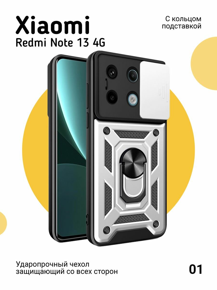 Чехол на Xiaomi Redmi Note 13 4G противоударный, серебристый интересное: