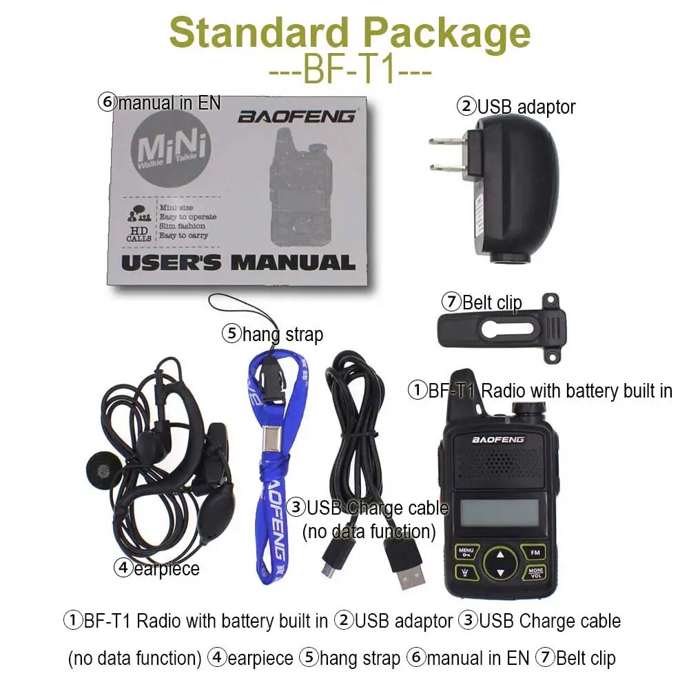 Рация Baofeng BF-T1 Mini двухсторонняя, с наушником, UHF 400-470 МГц 20 каналов, 2 шт, 2xBF-T1-usbx1