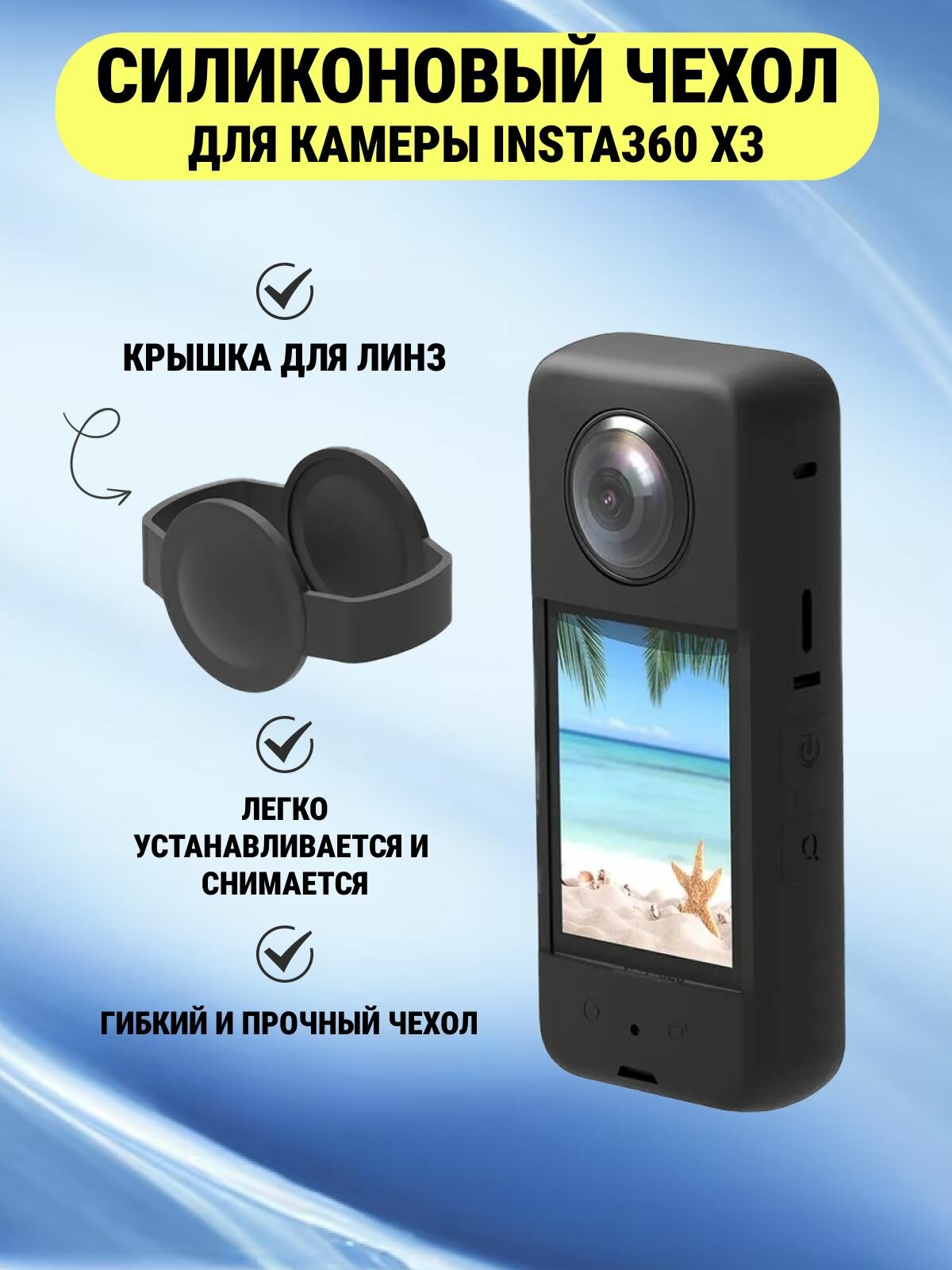 Силиконовый чехол для камеры Insta360 X3 + крышка для линз (черный) интересное: