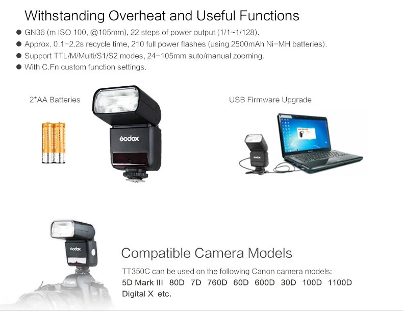 Мини-вспышка Godox TT350S, TT350N, TT350C, TT350F, для камеры Canon, Nikon, Sony, Fujifilm, Olympus, TT350 Flash only, for Sony интересное: