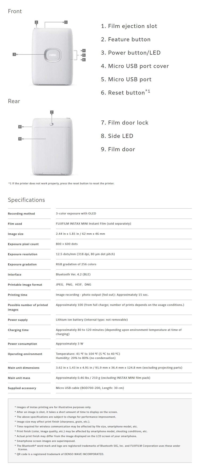 | Номер модели | Instax Mini Link |