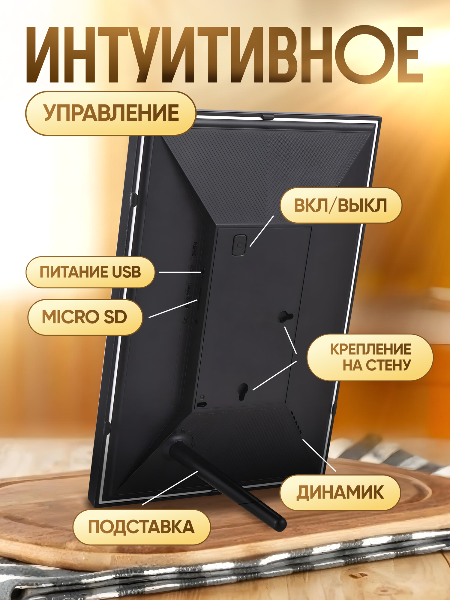 Цифровая сенсорная фоторамка с WiFi, воспроизведение фото и видео, звук, управление через приложение интересное: