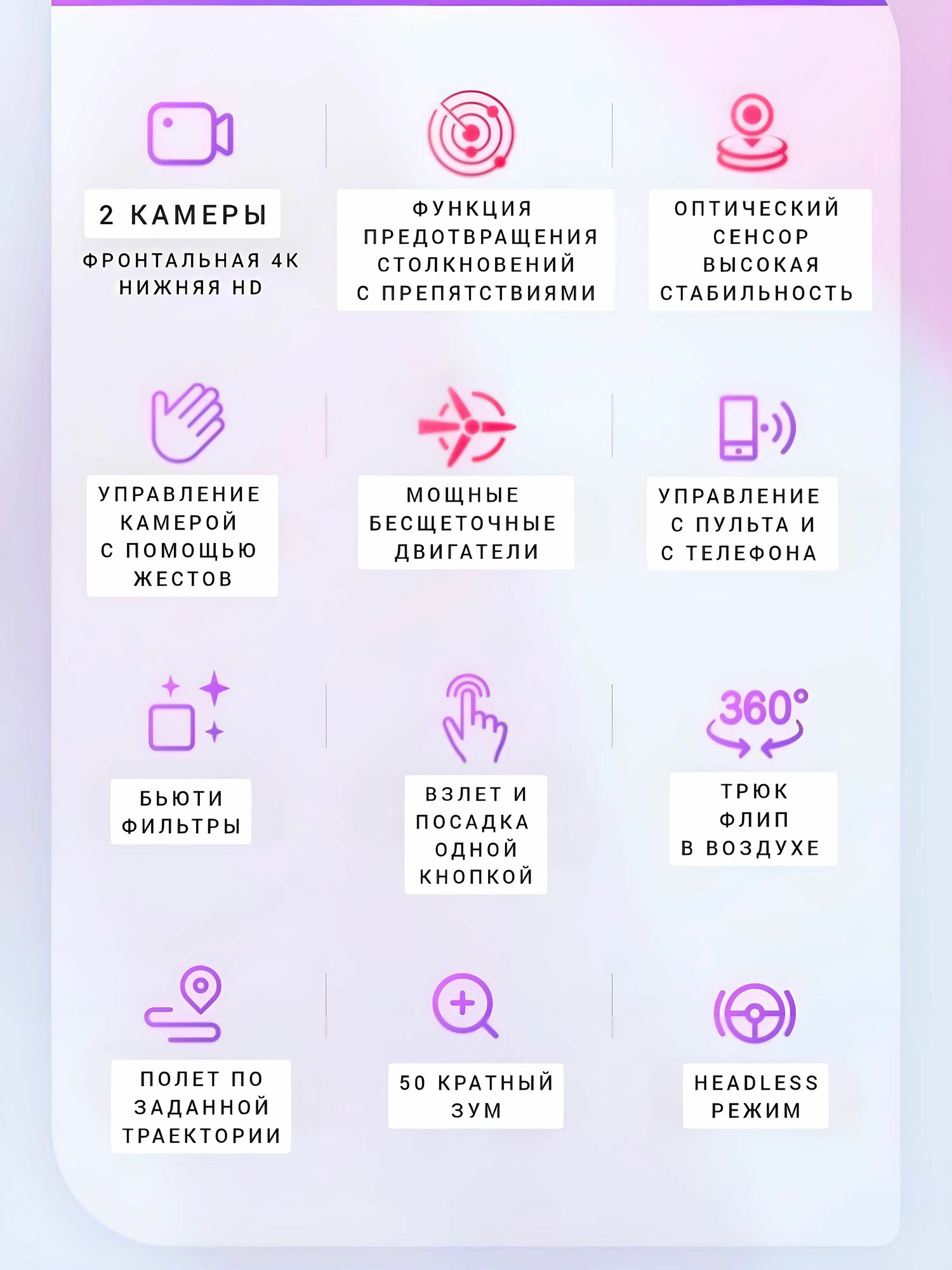 | Функции | headless mode / автоматический взлет и посадка / возвращение в точку взлета |