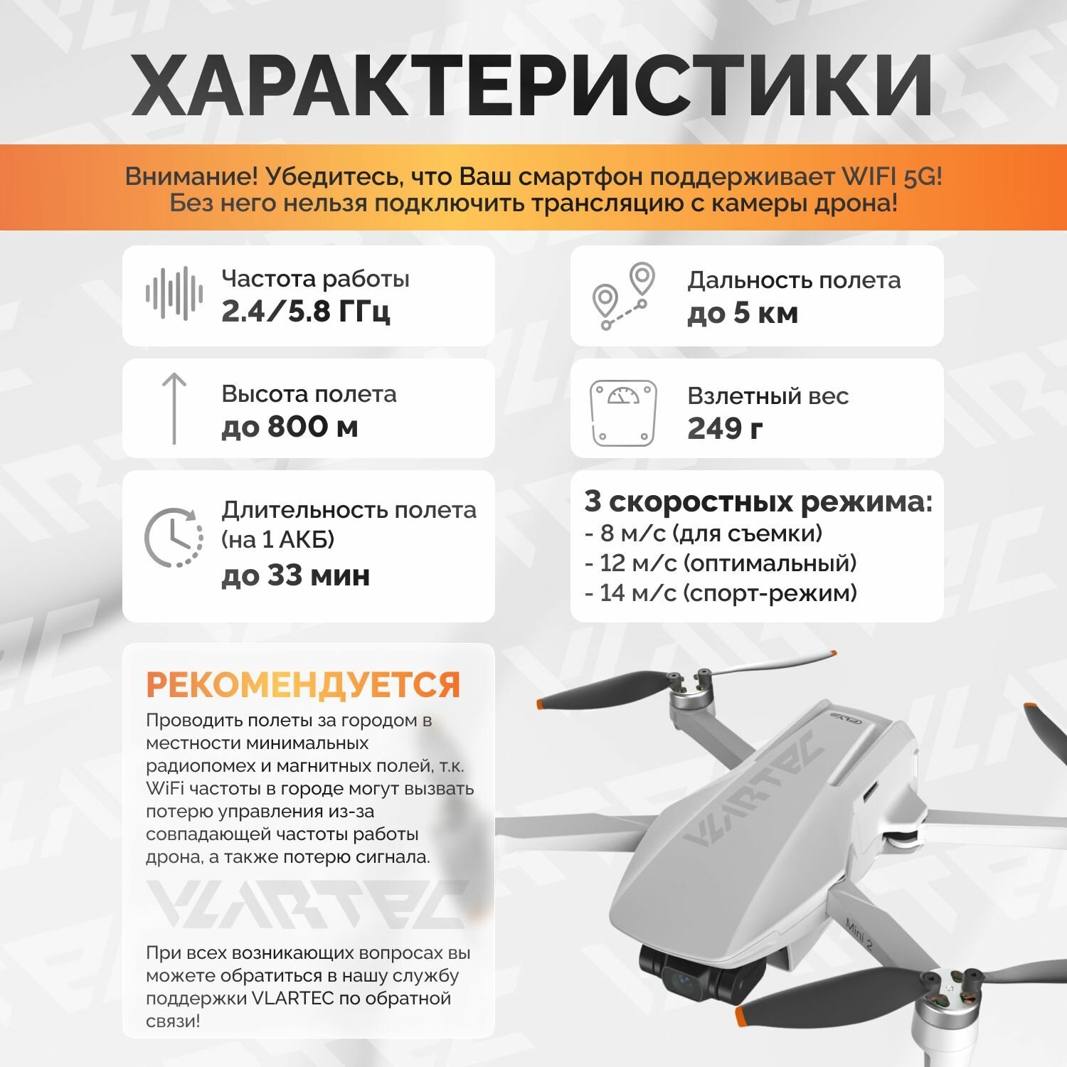 | Дополнительная информация | Имеет функции: полет по точкам, следование за объектом, патрулирование местности, возможность записи на карту памяти фото и видео (ВНИМАНИЕ! Карта памяти в комплект не входит!), возврат на точку по кнопке, аварийным возврат на точку при низком аккумуляторе, режим удержания для обеспечения стабильного полета, оптическая стабилизация, полет назад, интеллектуальная система обхода препятствий, 7ой уровень сопротивления ветру, антипомех и удержания высоты, что позволяет сделать качественные снимки без тряски и колебаний. |