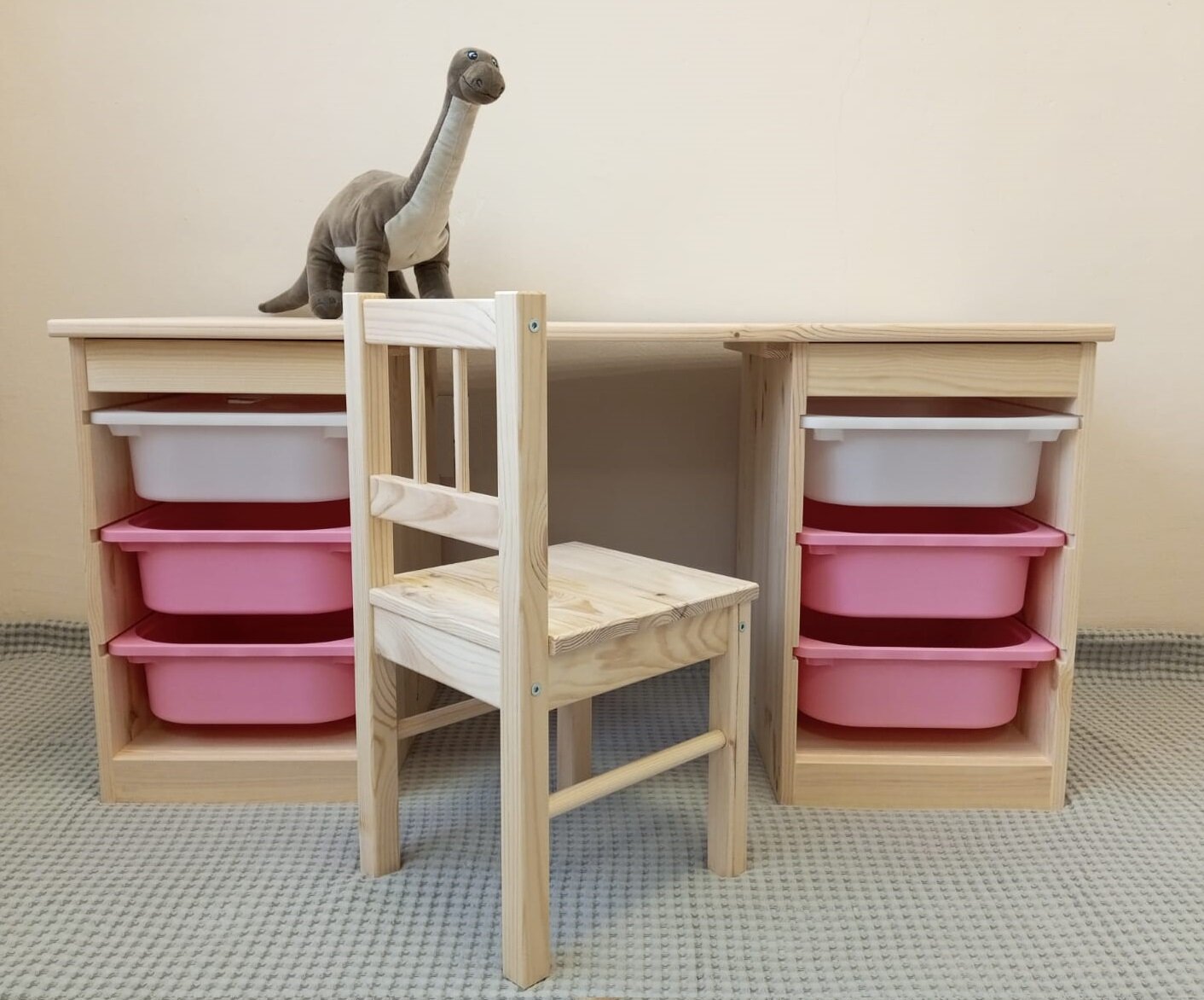 Детский стол и стул (комплект) Труфаст Trofast, сосна (с контейнерами 2 белых, 4 розовых) интересное: