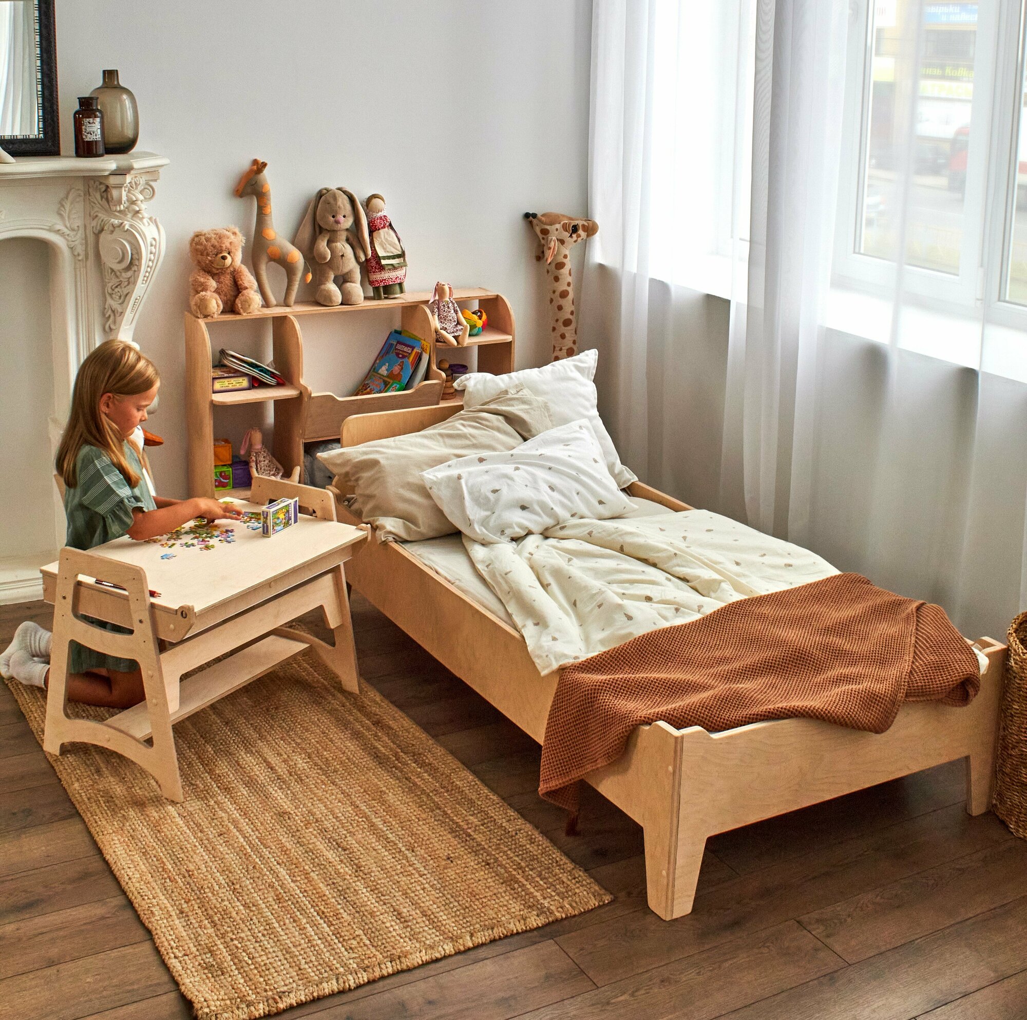 Растущая парта для школьника Rumbik Smart серая, детский деревянный письменный стол с регулировкой высоты