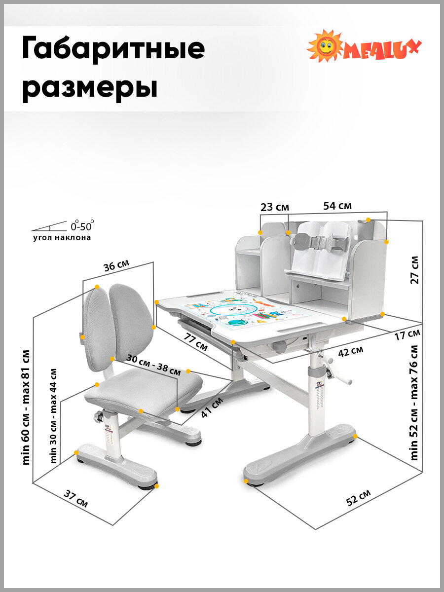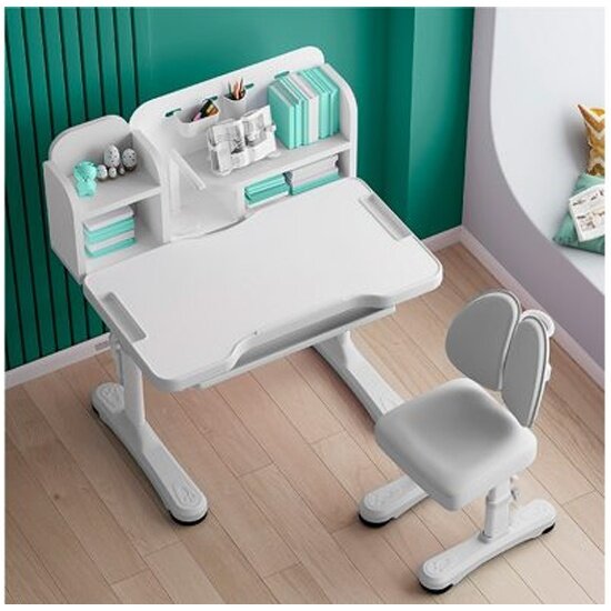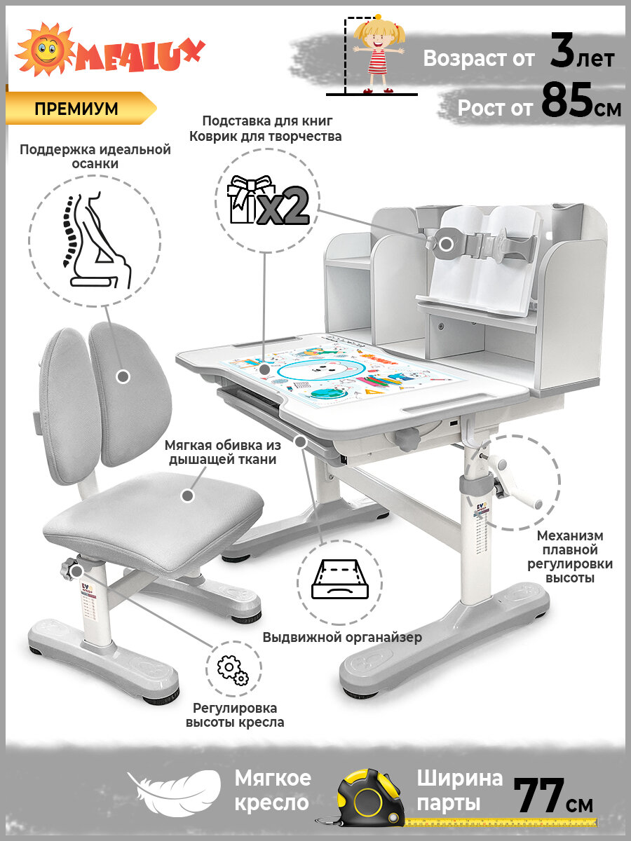 Растущая парта для школьника Rumbik Smart серая, детский деревянный письменный стол с регулировкой высоты