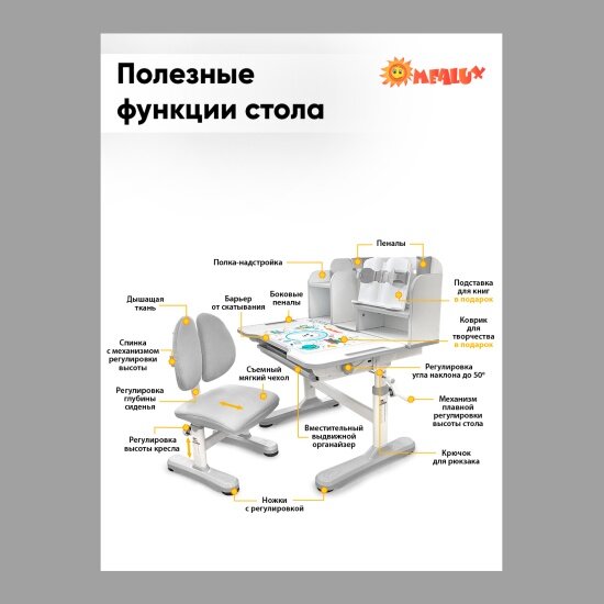 Комплект мебели (столик + стульчик) Mealux EVO Panda grey (арт. BD-28 G) интересное:
