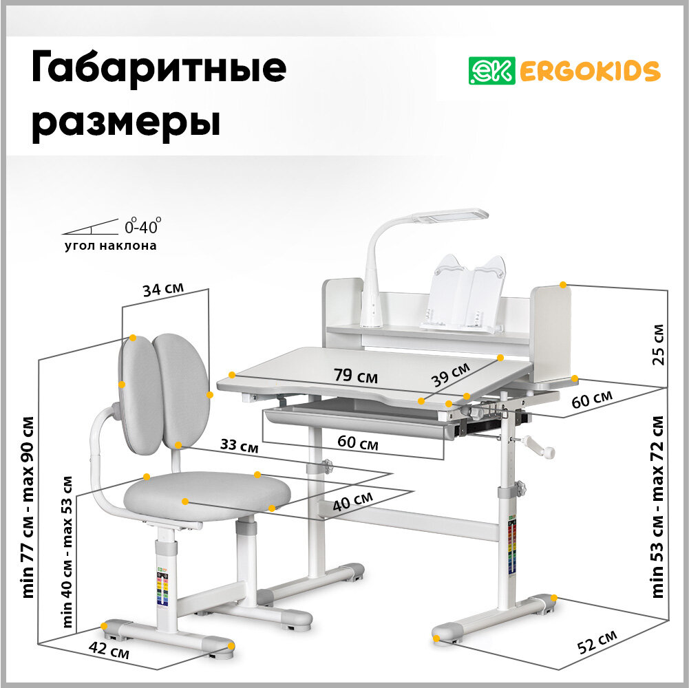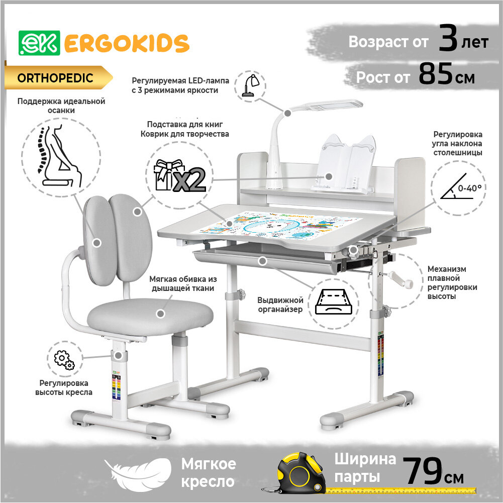 Купить Растущая детская парта стол с лампой (длина столешницы 80 см) и стул (мягкое кресло) BD-24 G