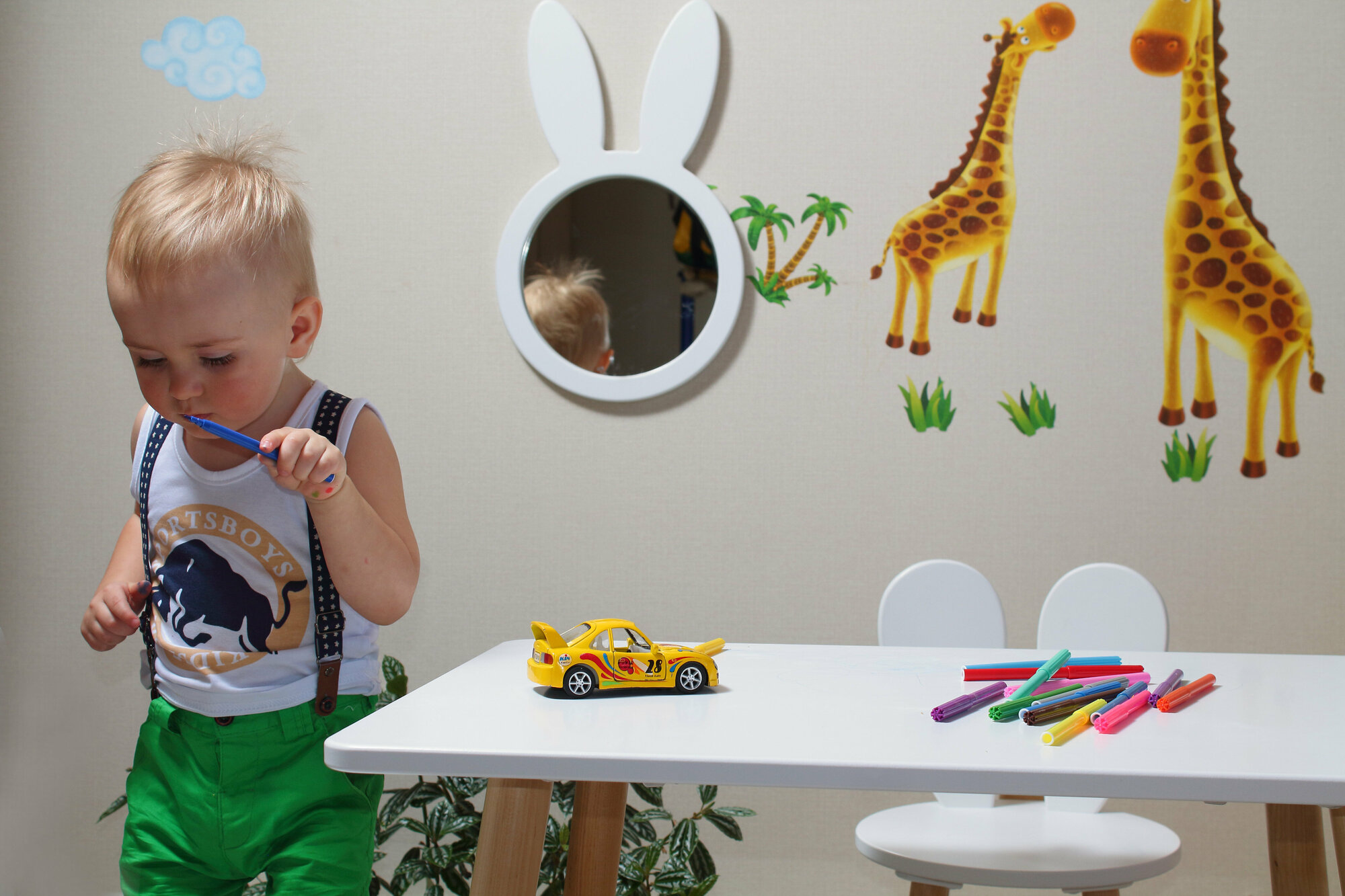 Белый овальный стол «Stumpa» разработан для удобного занятия творчеством или игр ребенка от 1,5 до 5 лет.