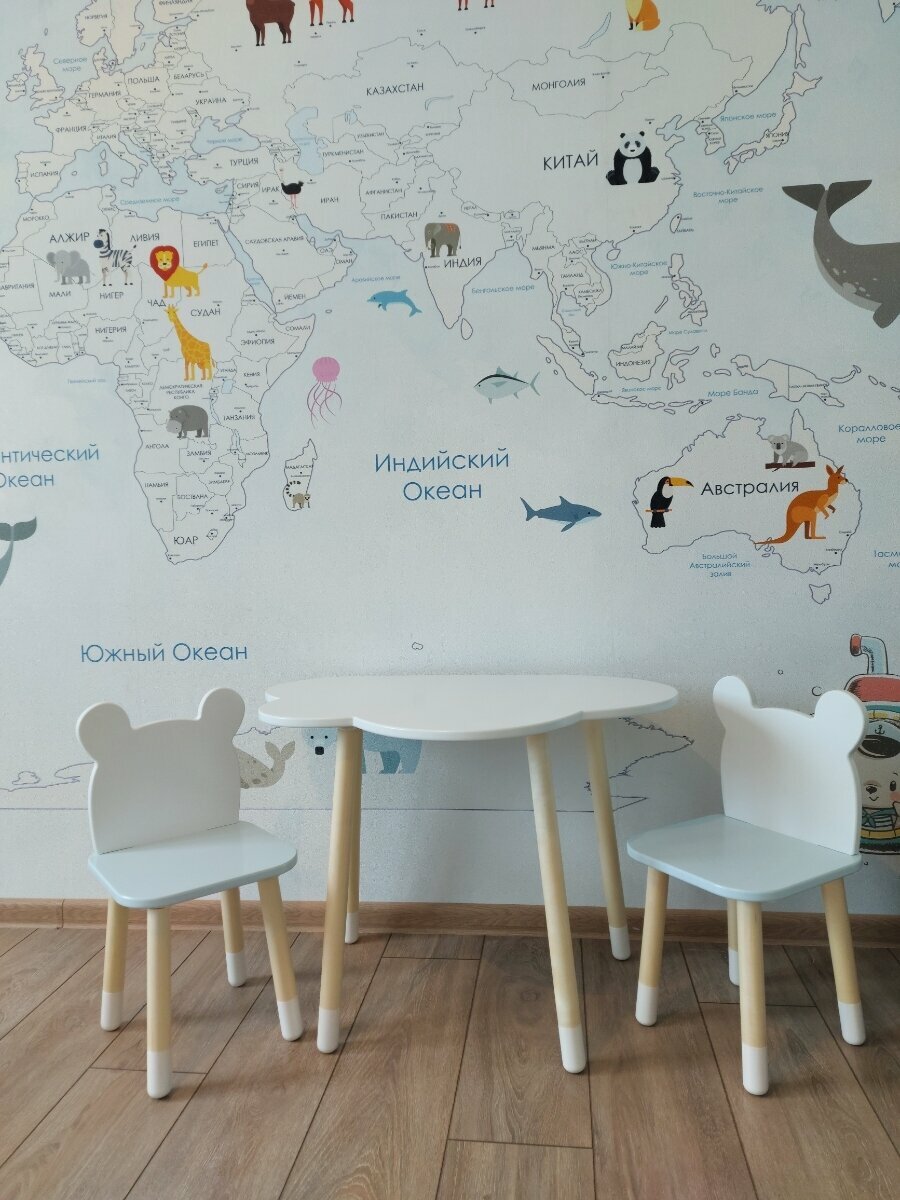 Комплект детской мебели DIMDOMkids, стол "Облако" голубой + стул "Мишка" голубой интересное: