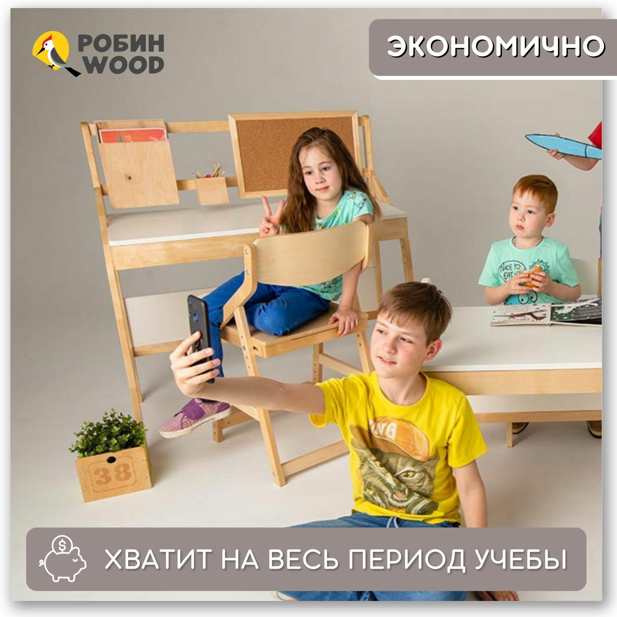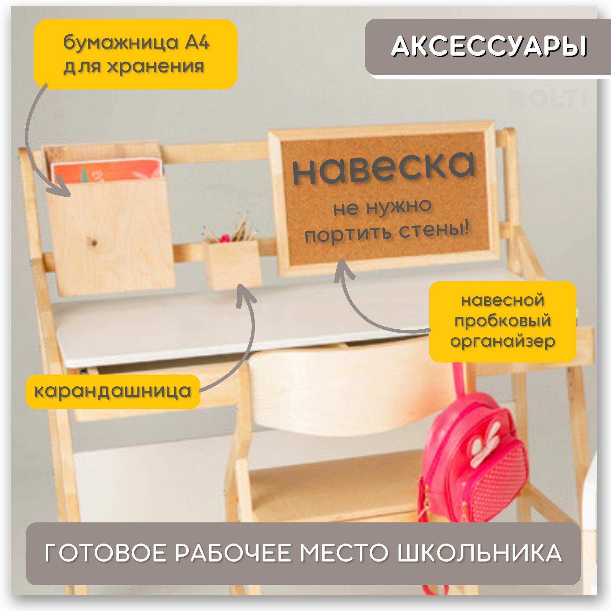 Стол растущий UNO (белый) парта для школьника с ящиком +органайзер+бумажница+карандашница Робин WOOD 38 попугаев + раскраска ROLTI интересное: