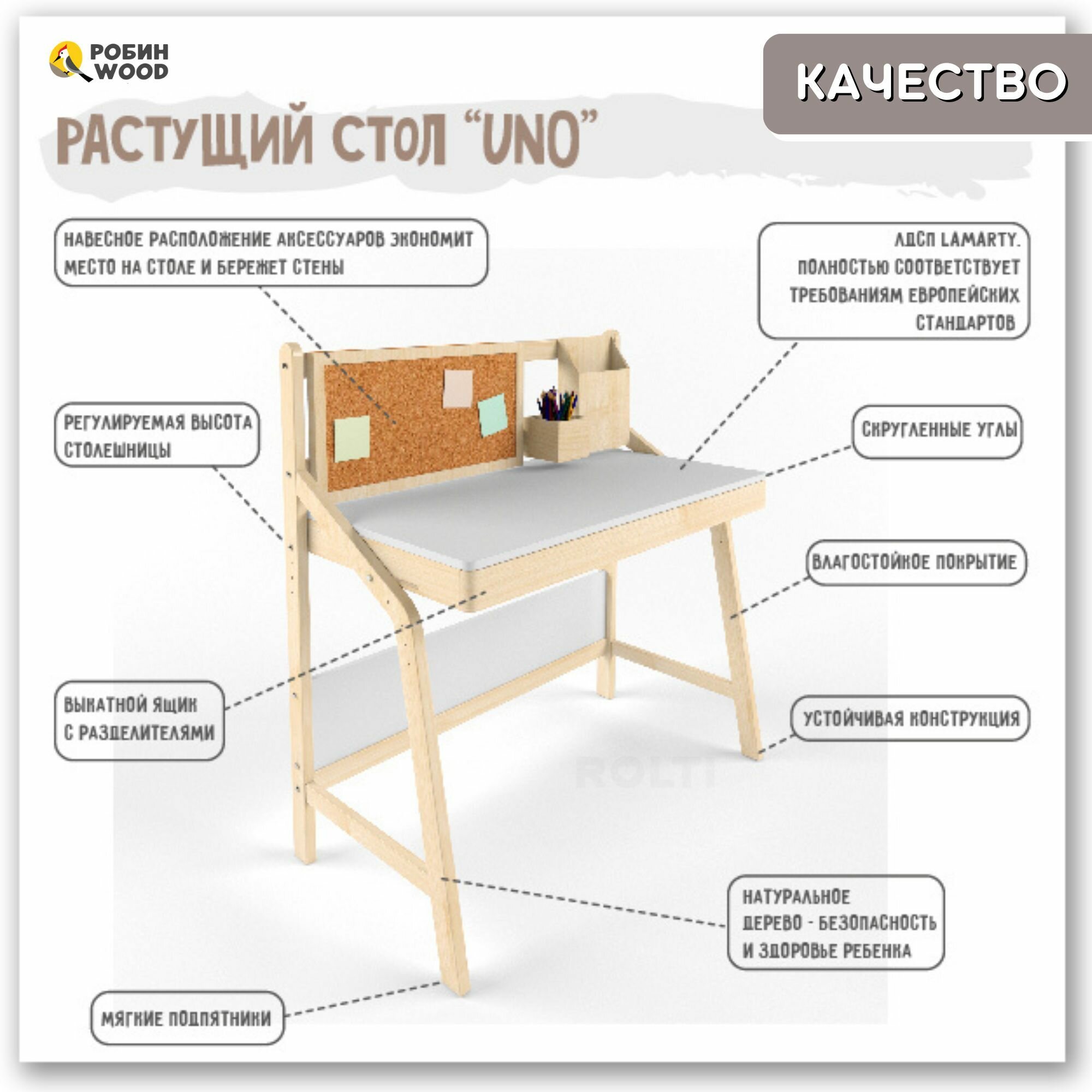 Купить Стол растущий UNO (белый) парта для школьника с ящиком +органайзер+бумажница+карандашница Робин WOOD 38 попугаев + раскраска ROLTI