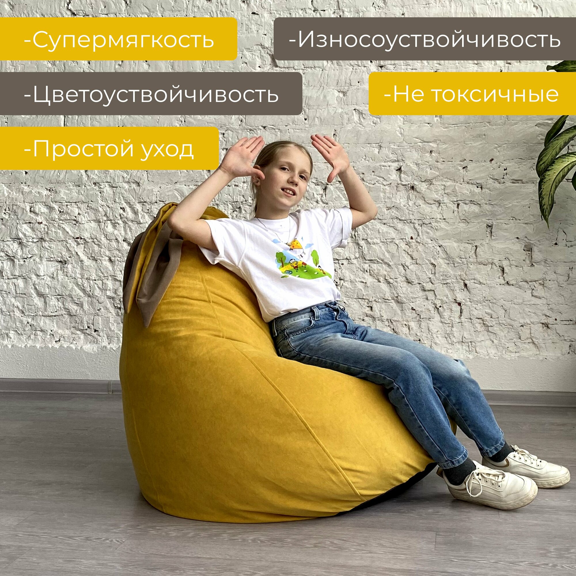 СохранитьКресло-мешок Горчичный "Ушастик" для детей и взрослых, размер XXL интересное:
