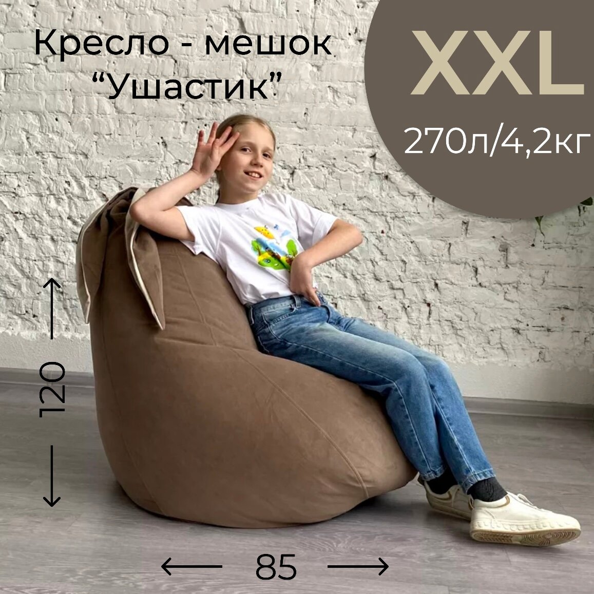 Купить Кресло-мешок кофе с молоком "Ушастик" для детей и взрослых, размер XXL