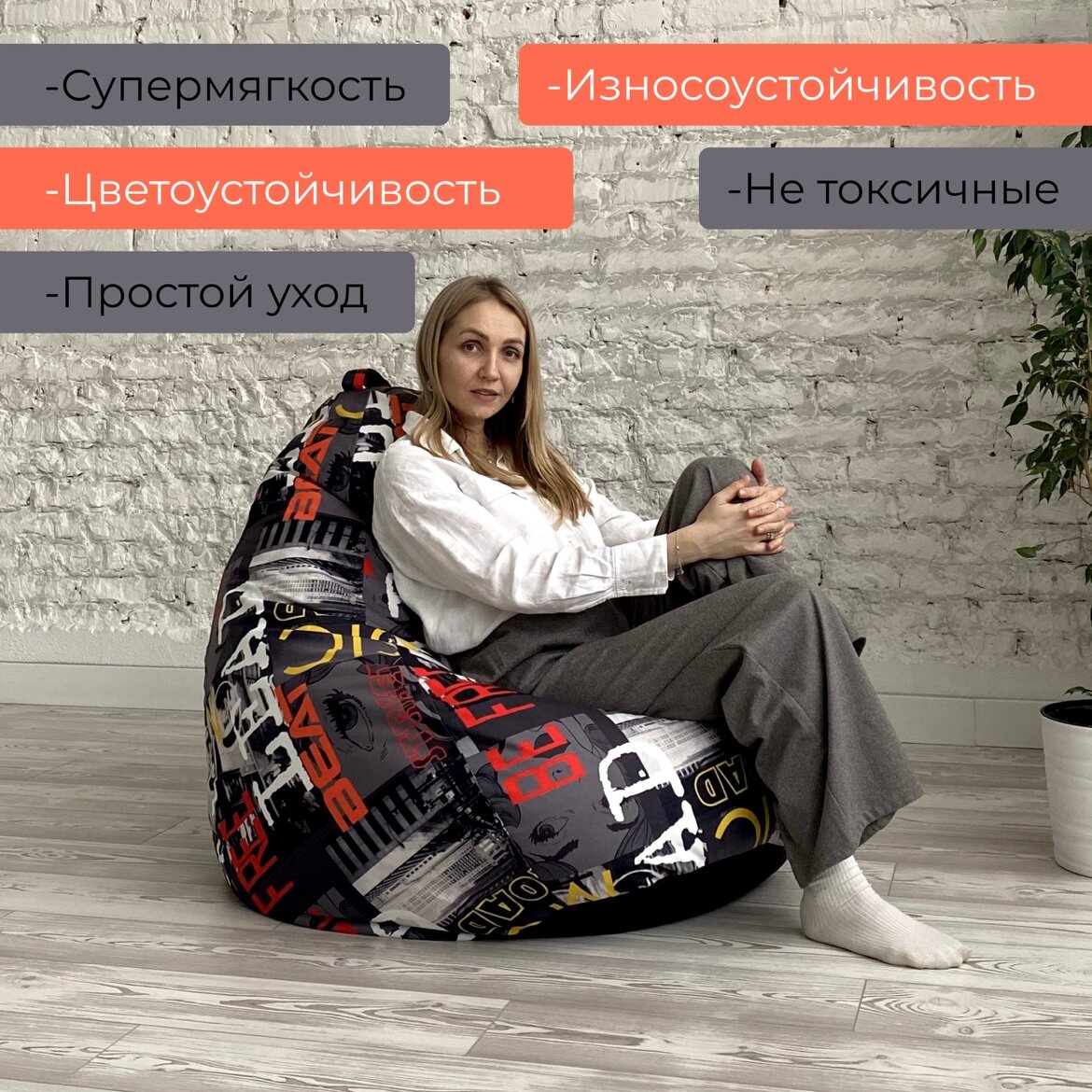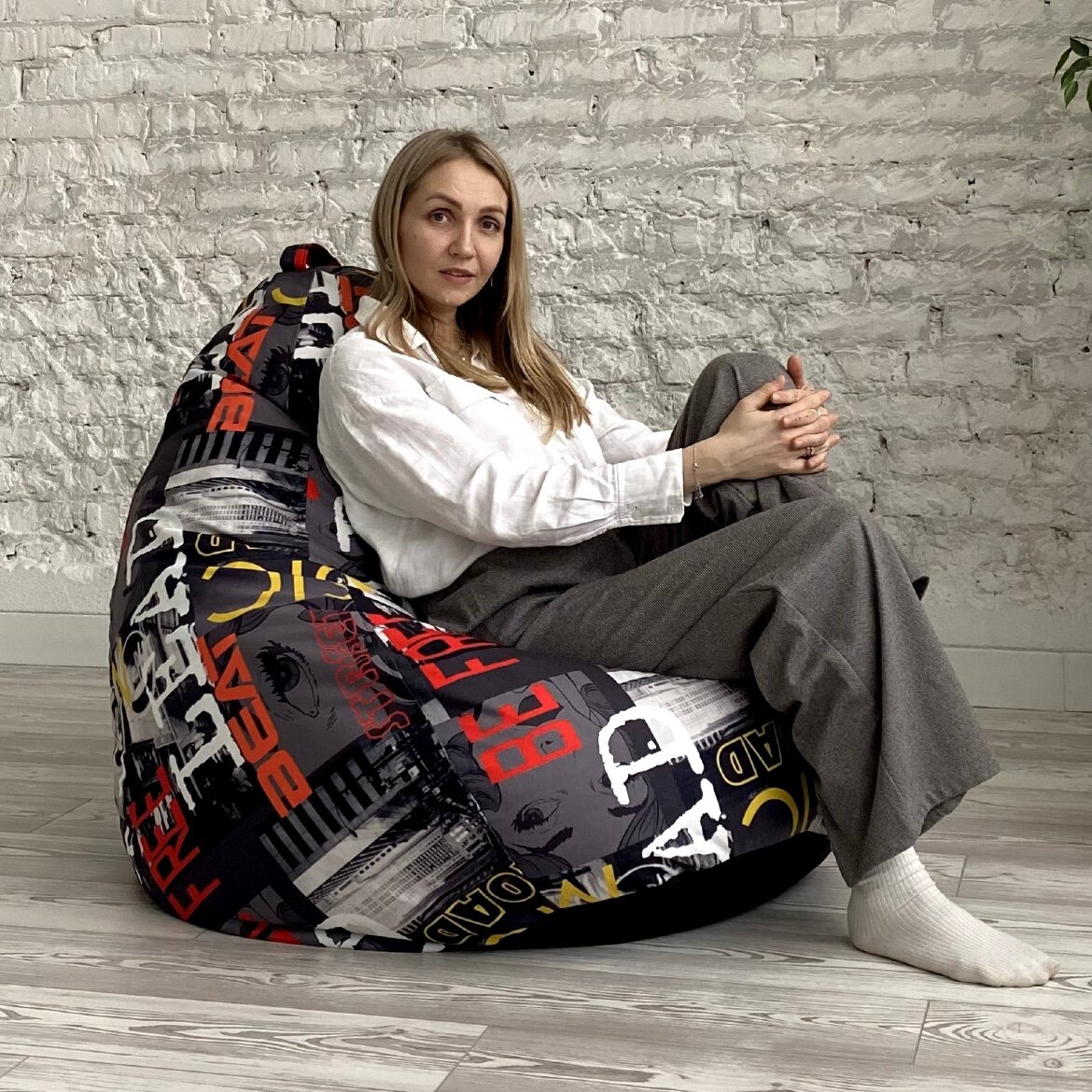 Кресло-мешок АртБинБэг, ткань велюр принт "Газета", размер XXXL