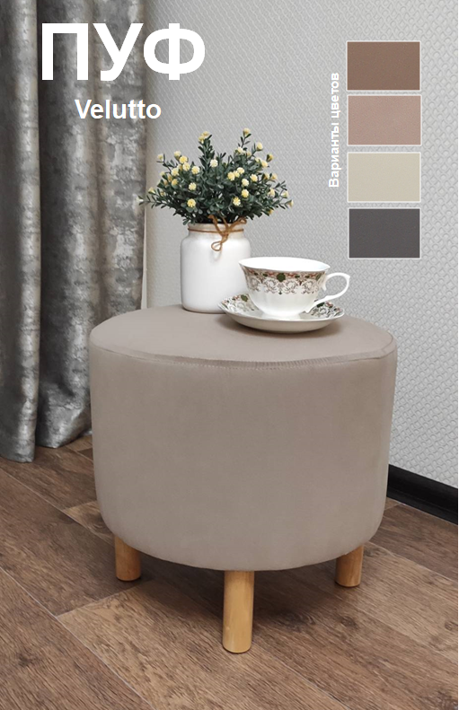 Пуфик круглый для прихожей, спальни, зала, детской.Велутто/Светлое кофе интересное: