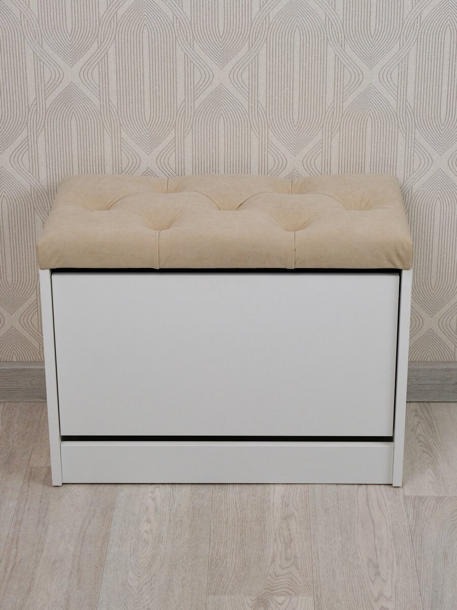 Обувница для прихожей с сиденьем закрытая / Пуф мягкий из экокожи / Банкетка в прихожую Бежевый 59.5*38.5*38
