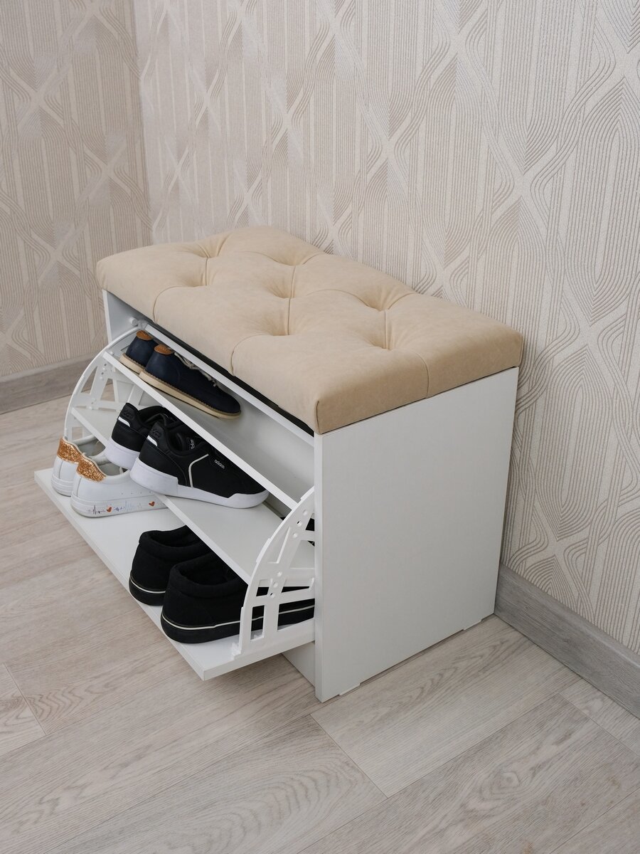 СохранитьПуфик в прихожую с обувницей Puffsib А-4, белый/бежевый интересное: