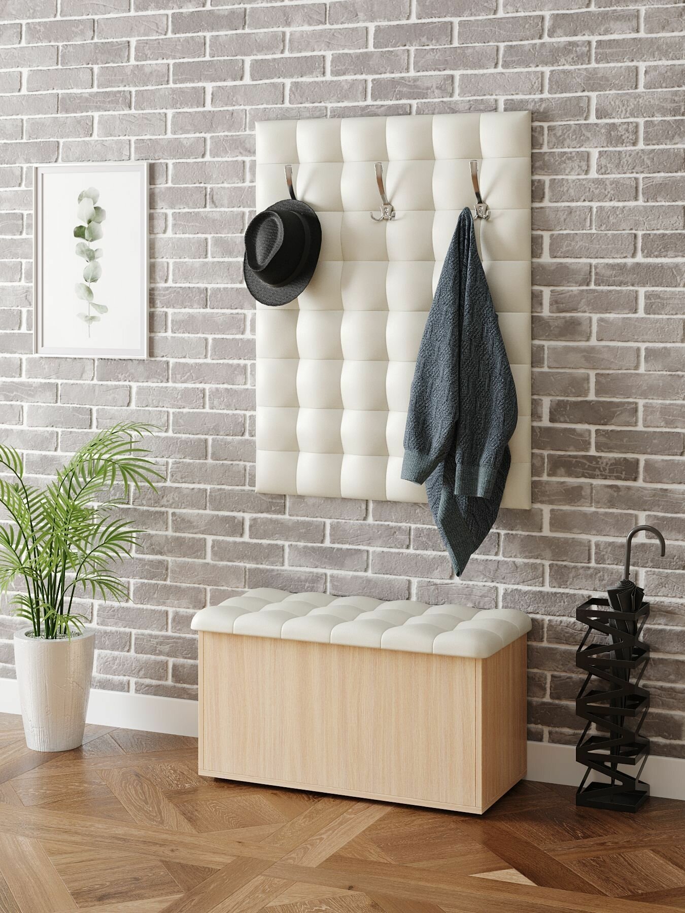 Обувница для прихожей с сиденьем закрытая / Пуф мягкий из экокожи / Банкетка в прихожую Бежевый 59.5*38.5*38