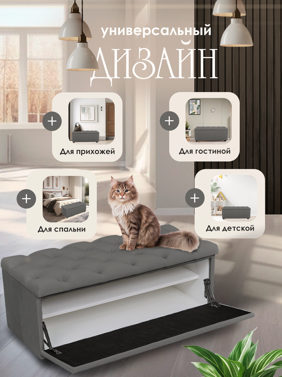 Обувница для прихожей с сиденьем закрытая / Пуф мягкий велюр / Банкетка в прихожую Серый 89.5*38.5*38 интересное: