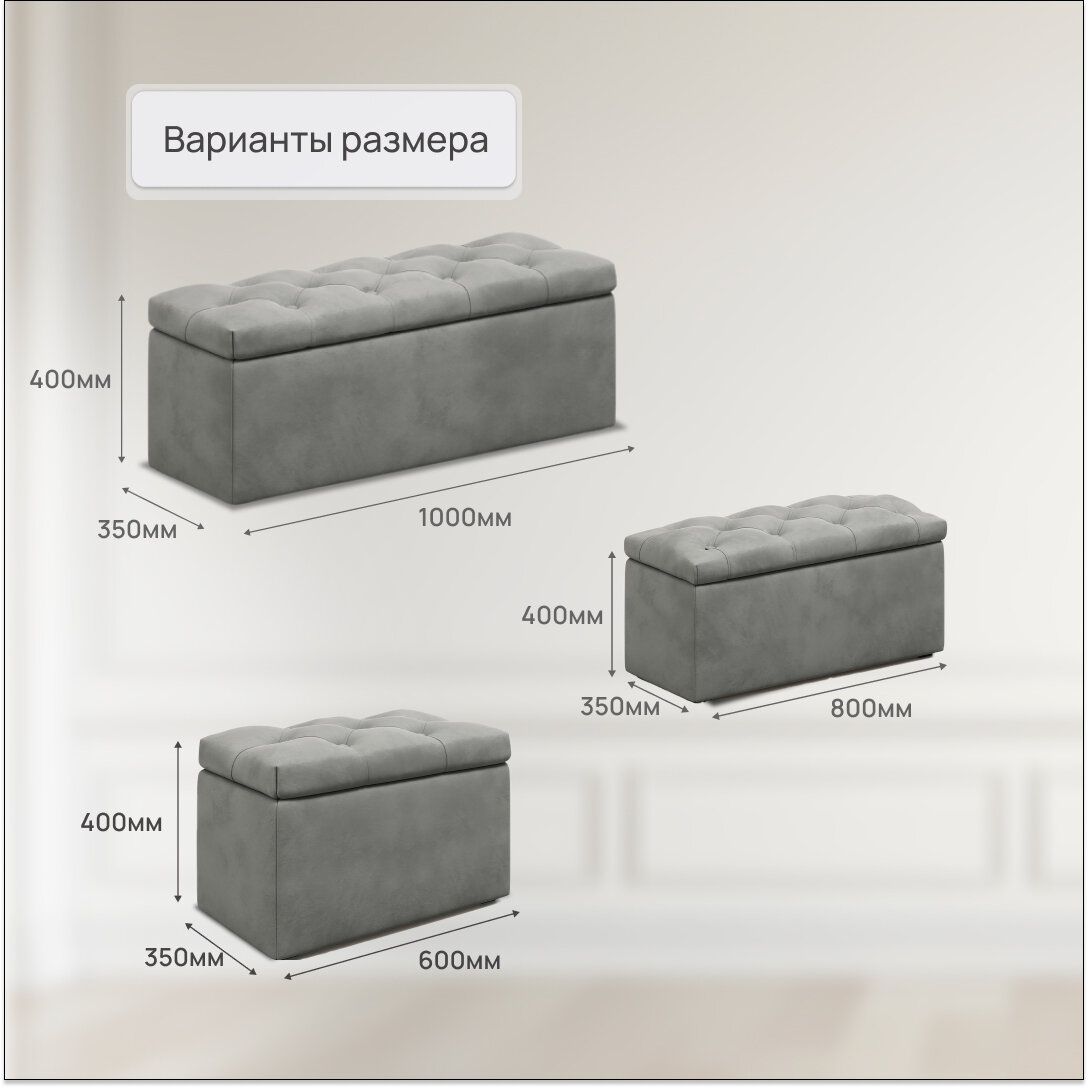 Купить Банкетка, пуф, с ящиком для хранения, с механизмом, открывной, "Мечта", серая, микровелюр, мягкий, квадратный, 100x35x40, в гостинную, в прихожую, в спальню, в коридор, подставка под ноги, к креслу